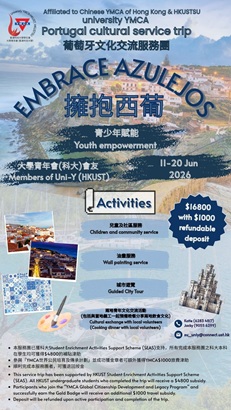 Disclaimer: The above activities are organized by external parties. Participants should contact respective organizers directly for enquiry and details. Students are advised to join at their own discretion. The University shall not be liable for any consequential, incidental or contingent loss or damage.