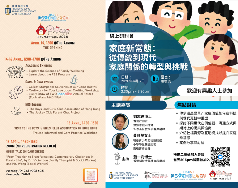 Quota: 40 HKUST colleagues (first-come-first served; Priority will be given to Staff Association Members.)