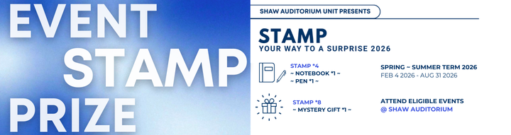 Don’t miss our new Stamp Collection Campaign — attend events, collect stamps, and redeem exclusive surprises as you explore the art and culture events at the Shaw Auditorium.